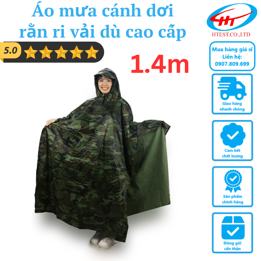Áo mưa cánh dơi rằn ri vải dù cao cấp 1.4m