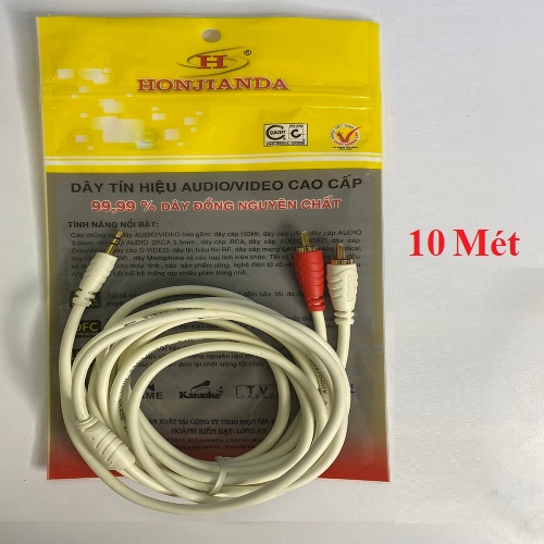 Dây cáp loa jack 3.5 ra 2 hoa sen dài 10M lõi đồng chống nhiễu