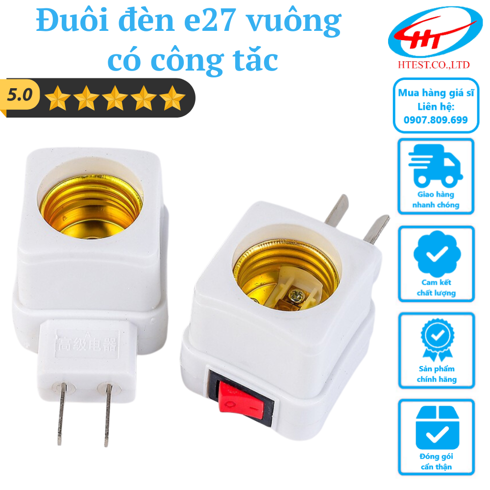 Đuôi bóng đèn e27 vuông có công tắc