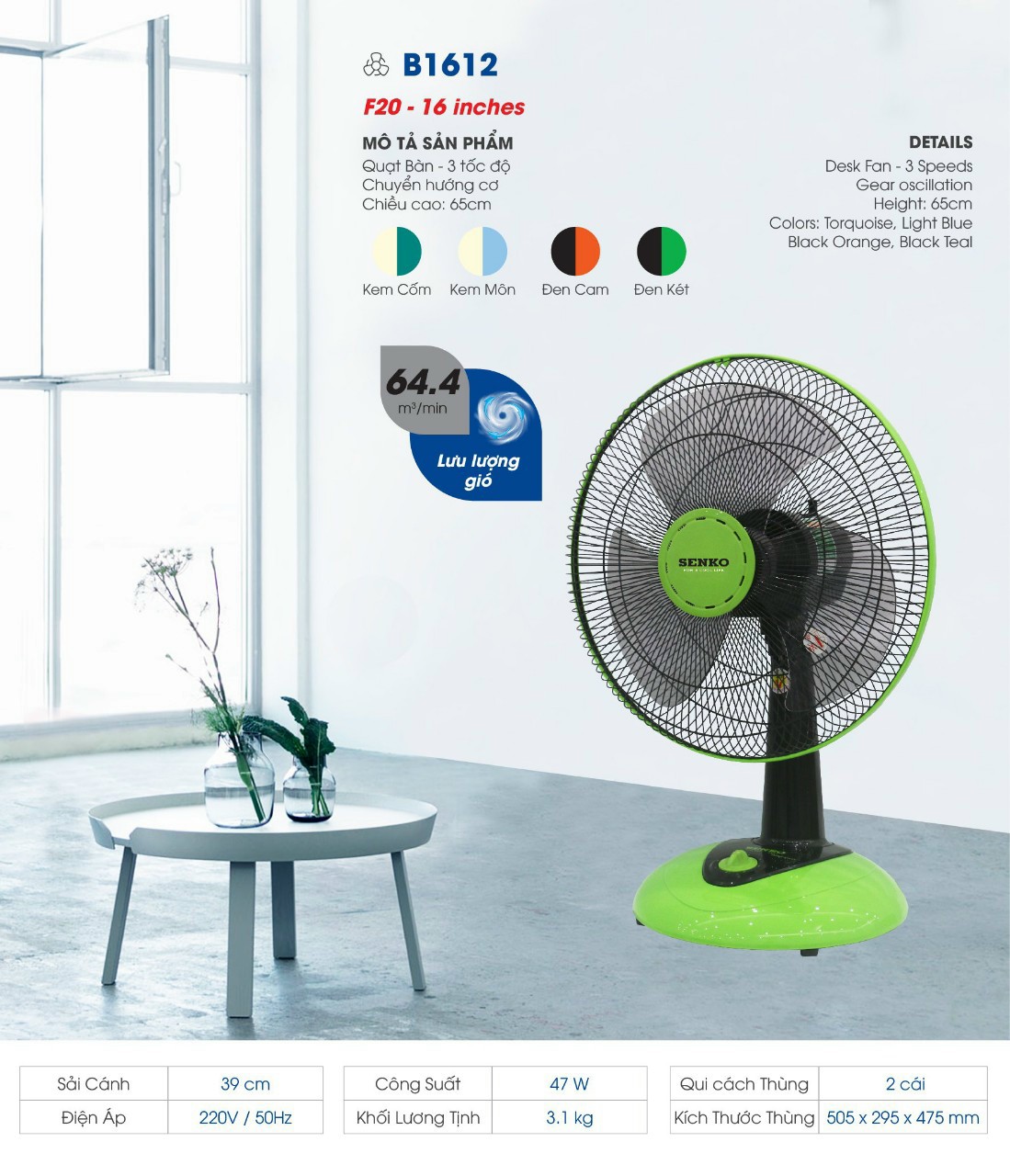 Quạt Bàn B4 nút vặn SENKO B1612